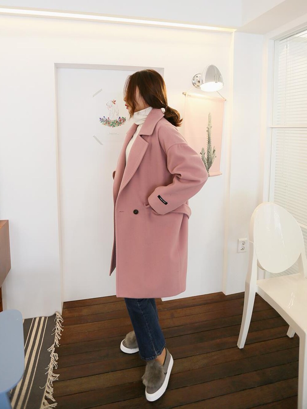 DAILYABOUTのピーコート「シンプルロングパステルチェスターコート(P0000VZR)」を使ったコーディネート