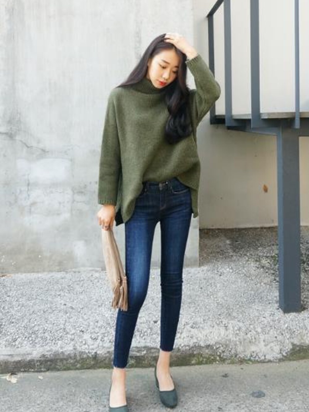 DAILYABOUTのニット/セーター「ラムウールサイドスリットハイネックニット (P0000TXI)」を使ったコーディネート