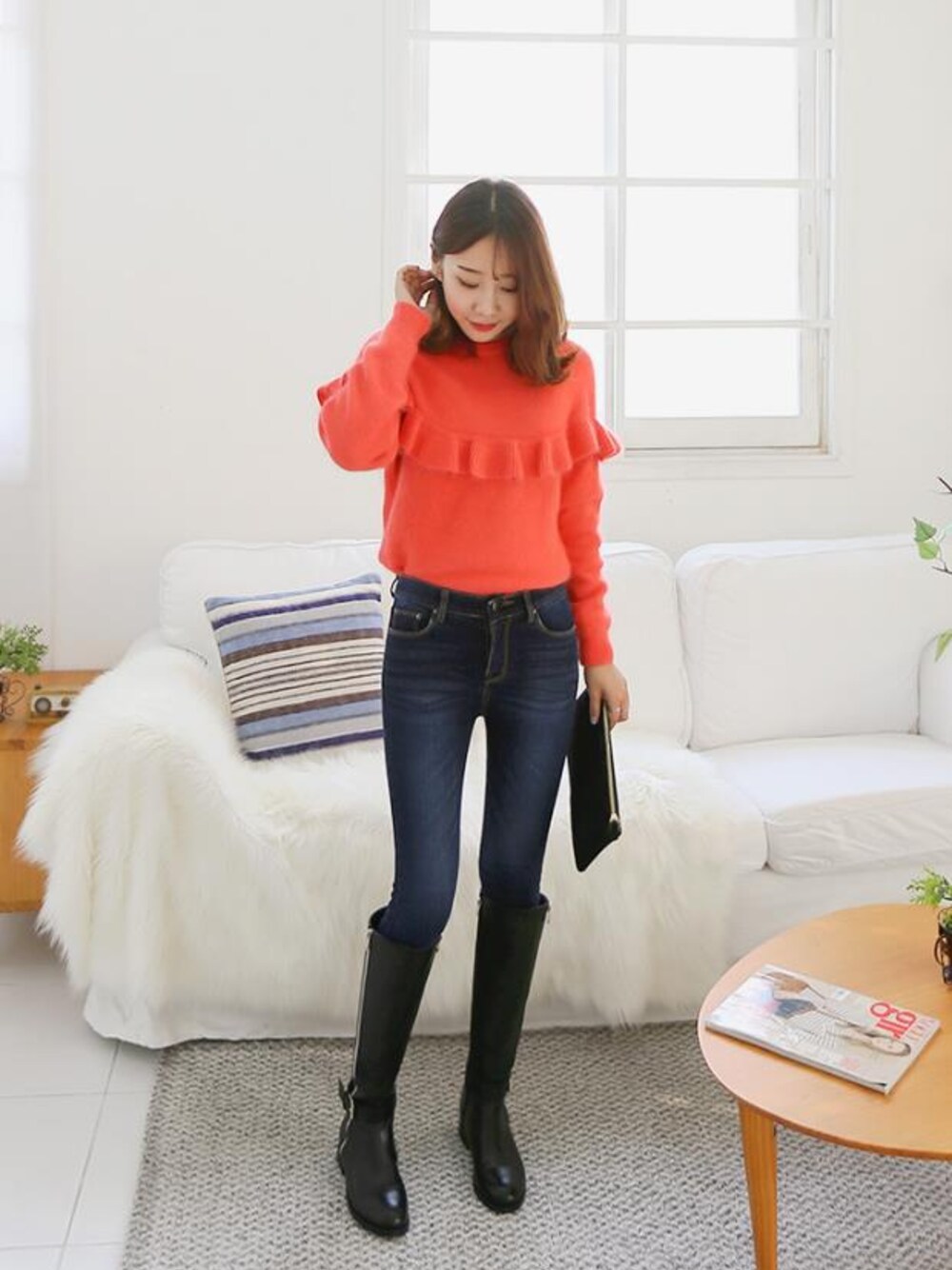 DAILYABOUTのニット/セーター「アンゴラ混紡フリルニット(P0000WIQ)」を使ったコーディネート