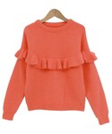 ふんわりソフトな風合いが魅力的なアンゴラ混紡ニット! ウールとアンゴラをブレンドしたリッチなニット素材でやわらかく保温性抜群◎ シンプルなフォルムのセーターにフリルをあしらって フェミニン度をUPしたアイテム♪ ばっちり主役になる1枚なので、ボトムスはシンプルにまとめるとGOOD☆
