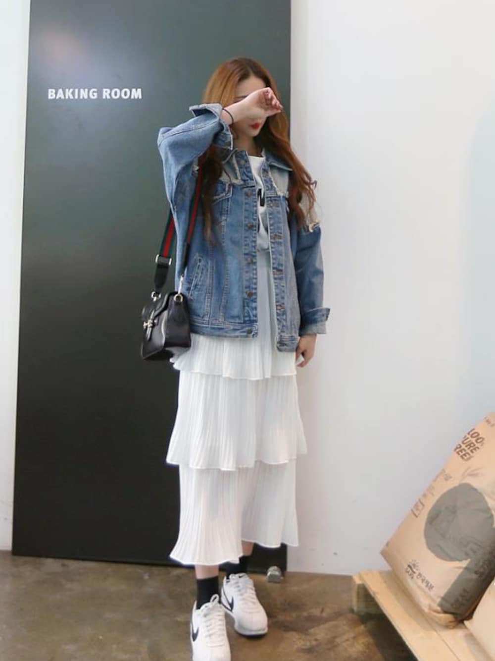 DAILYABOUTのデニムジャケット「ユニークフリンジ切り替えオーバーフィットデニムジャケット(P0000WPT)」を使ったコーディネート