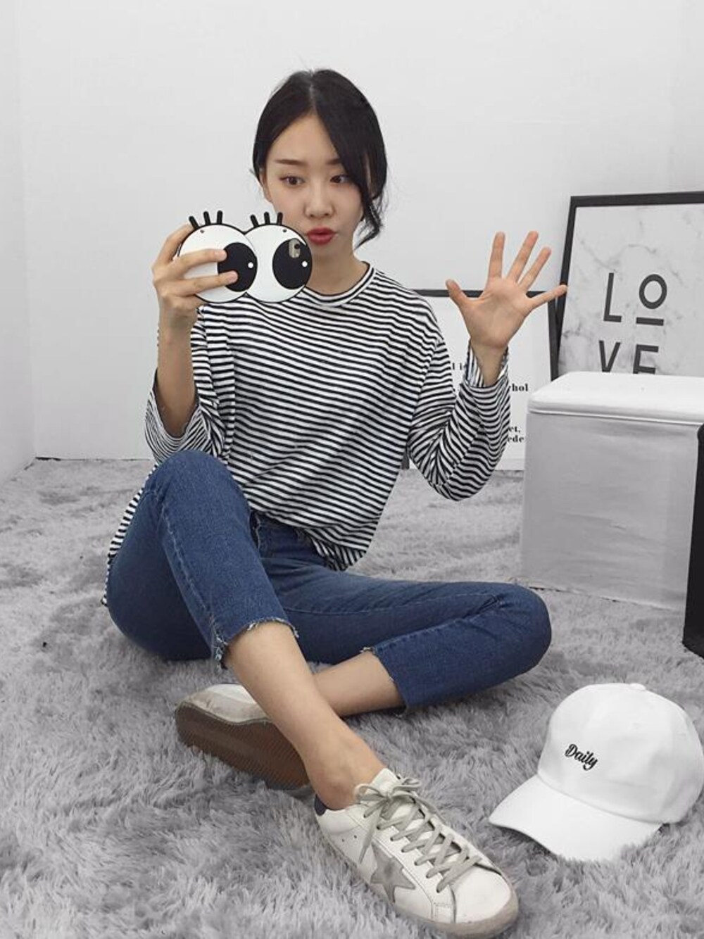 DAILYABOUTのTシャツ/カットソー「ベーシックサイドスリットルーズフィットボーダーTシャツ(P0000WUV)」を使ったコーディネート