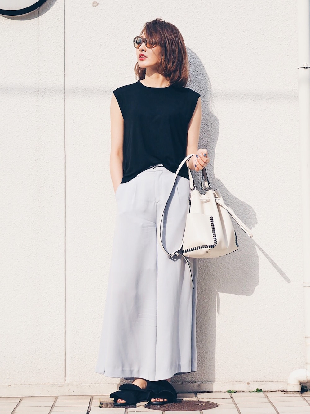 ワイドパンツは何にでもつかえる万能アイテム♡ 来週発売のノースリーブも後ろの肌見せがかなり可愛いですー