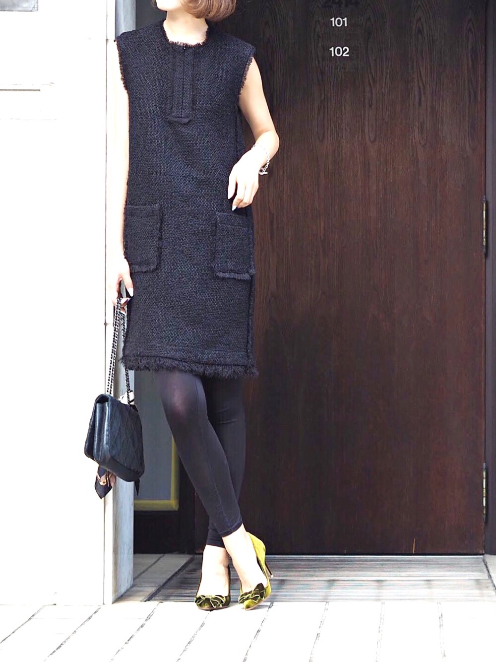 ツイードワンピ、一気に秋らしくなるのでこの時期から大活躍です!