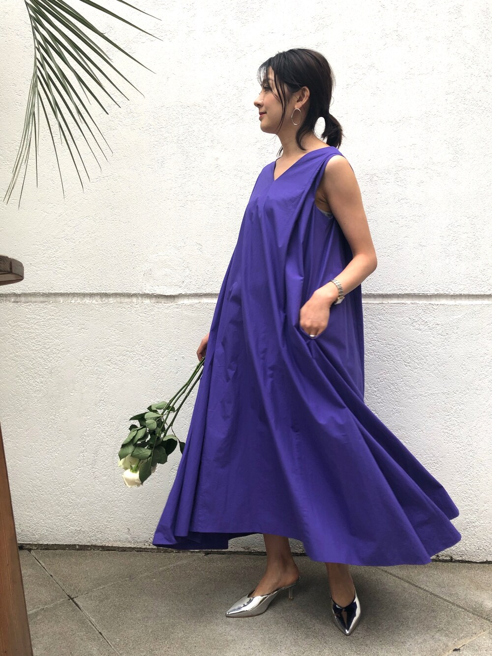 1枚でサマになるワンピース。歩くたびに広がるフレアーラインが綺麗な1着。