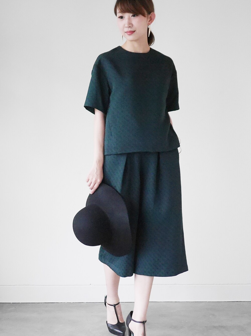 ジャガードのトップスとパンツをセットアップでコーディネート。 ゆったりシルエットのトップスとウエストがゴム仕様のパンツで着心地抜群でありながら、ジャガード素材がきちんと感を出してくれます。 合わせる小物によってはフォーマルな場所にも対応できてオススメです!