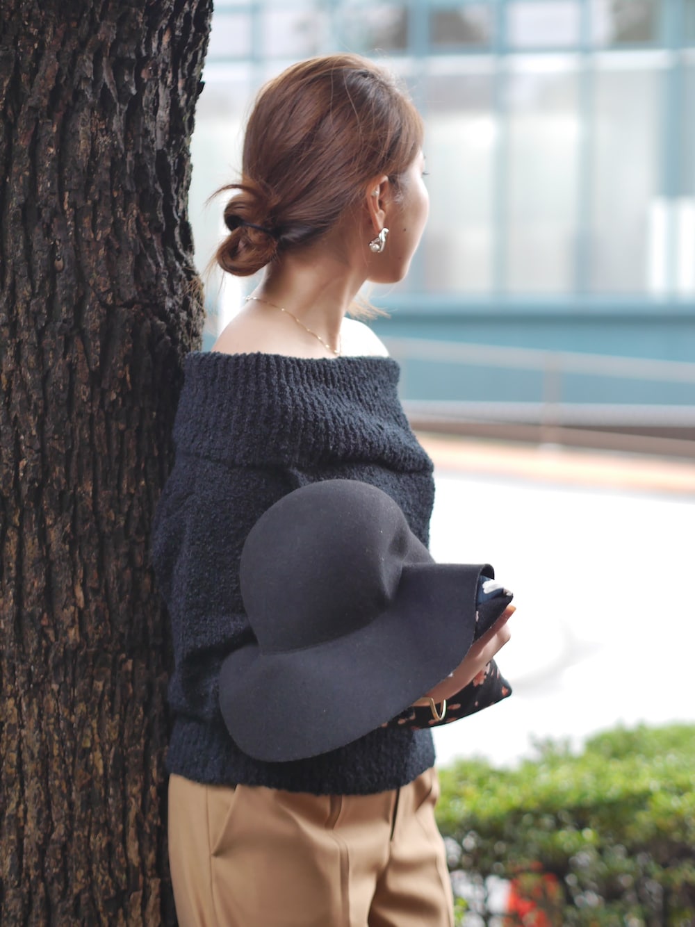本日から予約スタートしたオフショルダーニット♡ もこもこした素材とオフショルダーにしてデコルテを綺麗に見せることで女性らしさが演出できます。