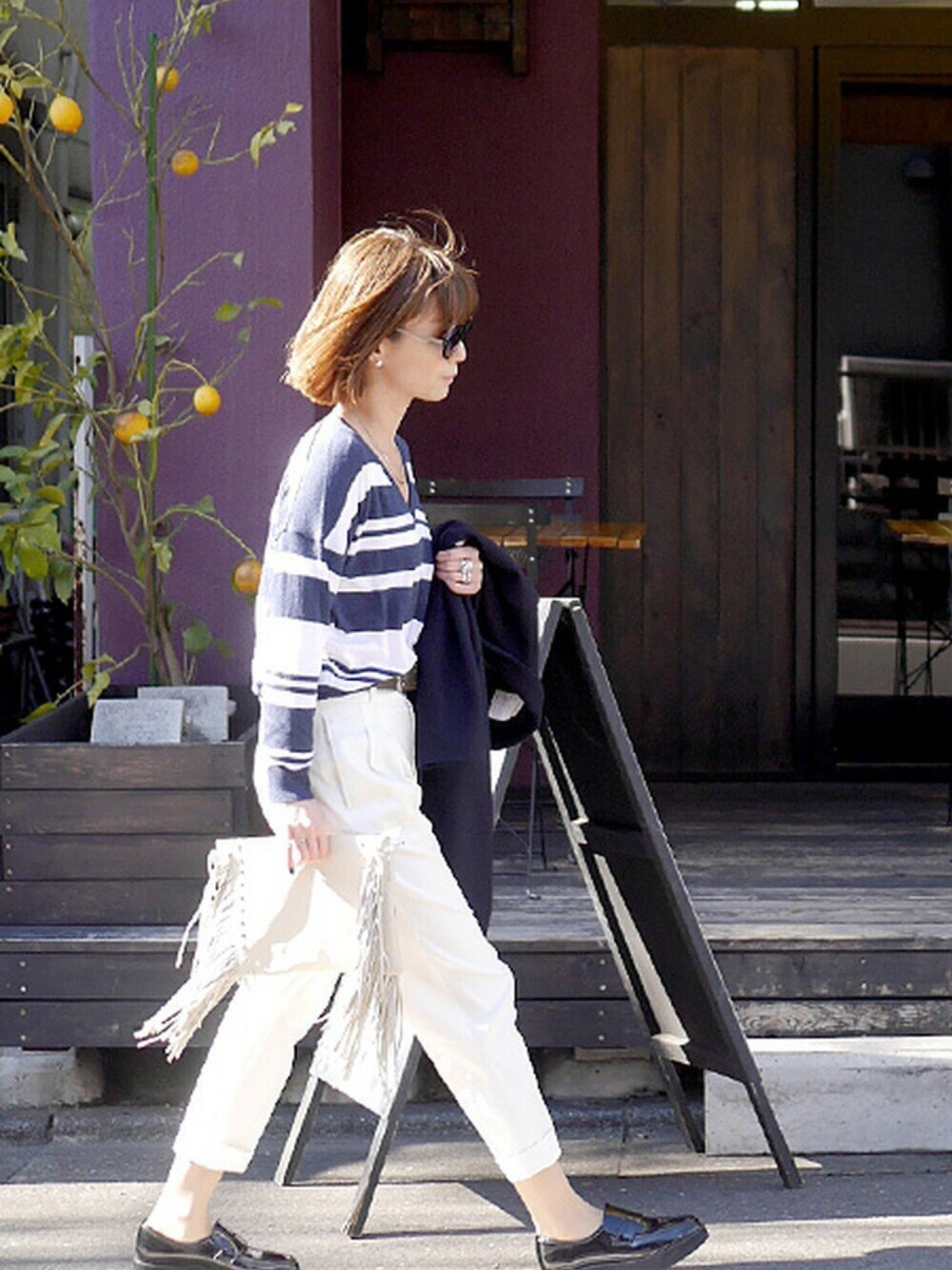 シルク混で肌触りの良いニット。 この春トレンドのVネック開きで鎖骨をキレイにみせてくれます。