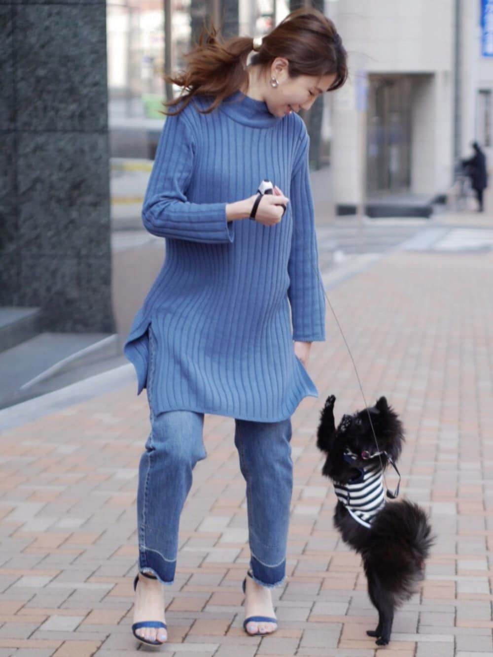 セットアイテムを単品使い♡ チュニック丈のニットはパンツとの相性も抜群です。 デニムパンツは予約販売がスタートしたばかりの新作!