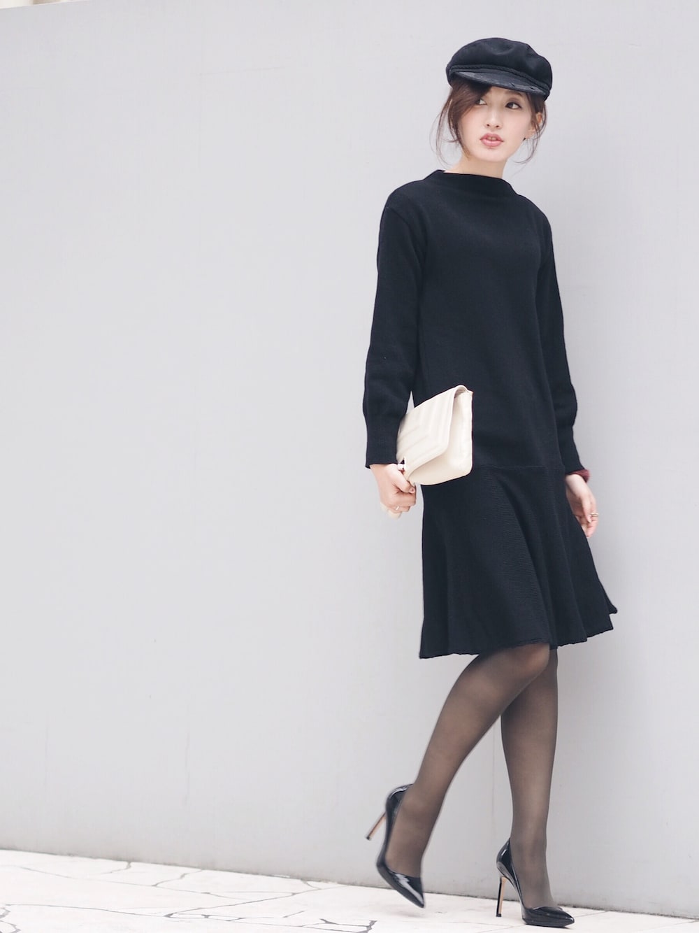 ブラックのシンプルなニットワンピはカラータイツで遊ぶのが今年の気分です♡