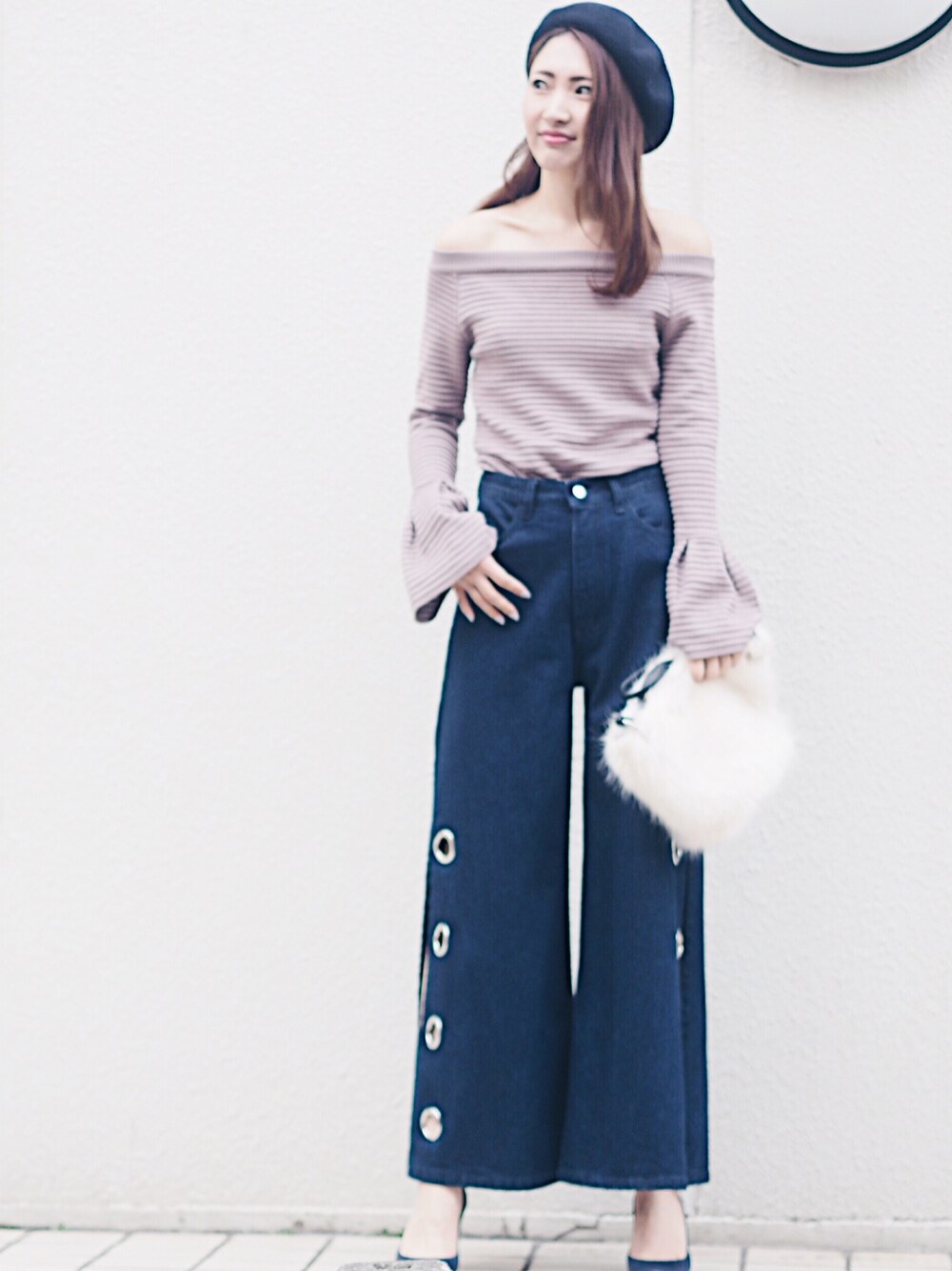 春夏発売予定のフレアデニムときに大人気残りオフショルニットを合わせました♡