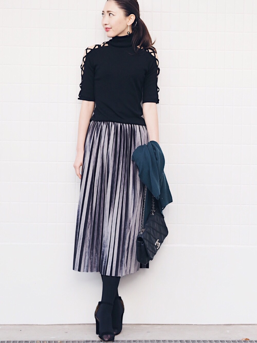 プリーツスカートでも、ベロア地ってところが珍しくて気に入っています💕