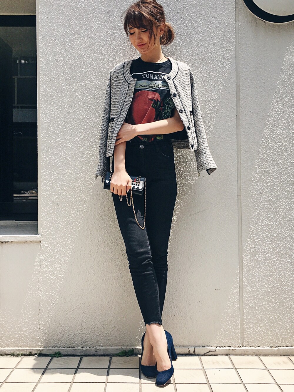 メンズTにスキニーっていうシンプルなスタイルもツイードジャケットで少し大人に♡