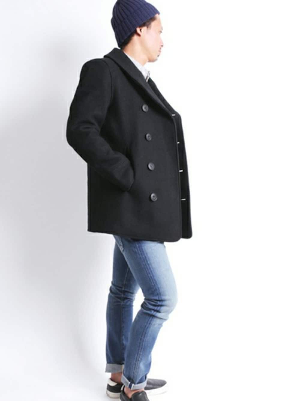 着用コーデ:40件秋冬予約商品のPコートをメインとしたシンプルなコーディネート。 細めのストレッチデニムでバランス良く仕上げました。 重厚なな新作ピーコートは、長くお使い頂ける国産アイテム。 ZOZO別注のブラックカラーで展開。