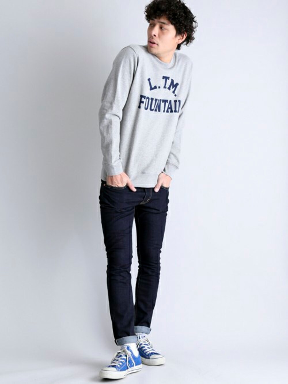 DenimeWebStoreのスウェット「PRINT CN SWEAT/プリントクルーネックスウェット」を使ったコーディネート