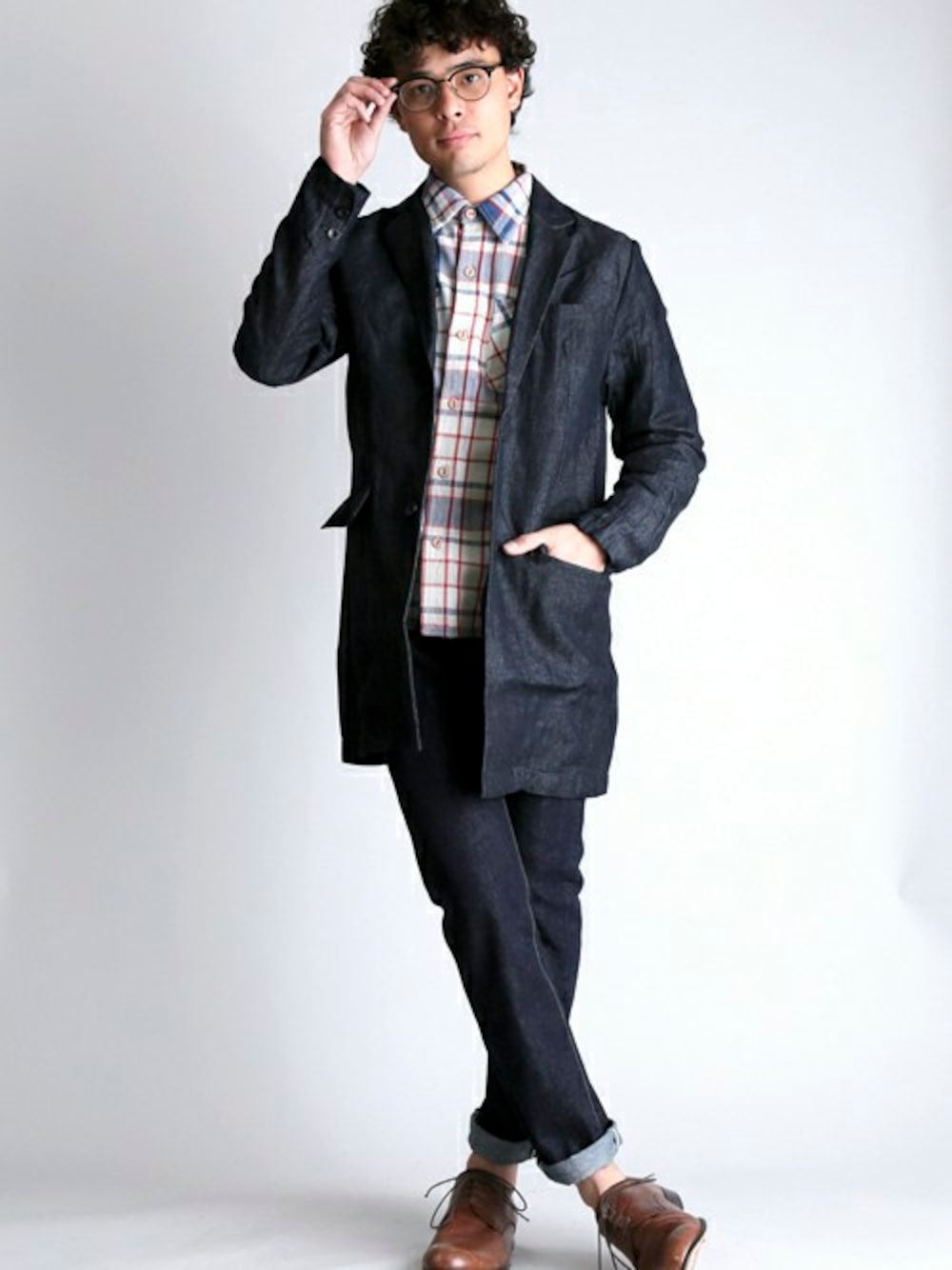 新作のデニムチェスターはテーラードジャケット感覚で合わしたコーディネート!! インナーにはネルシャツを合わしたスタイリングでも綺麗な印象にて合わせることが出来ました。 この組み合わせでもデニムのセットアップになりアメカジとは少し印象が変るのもおもしろいですね。