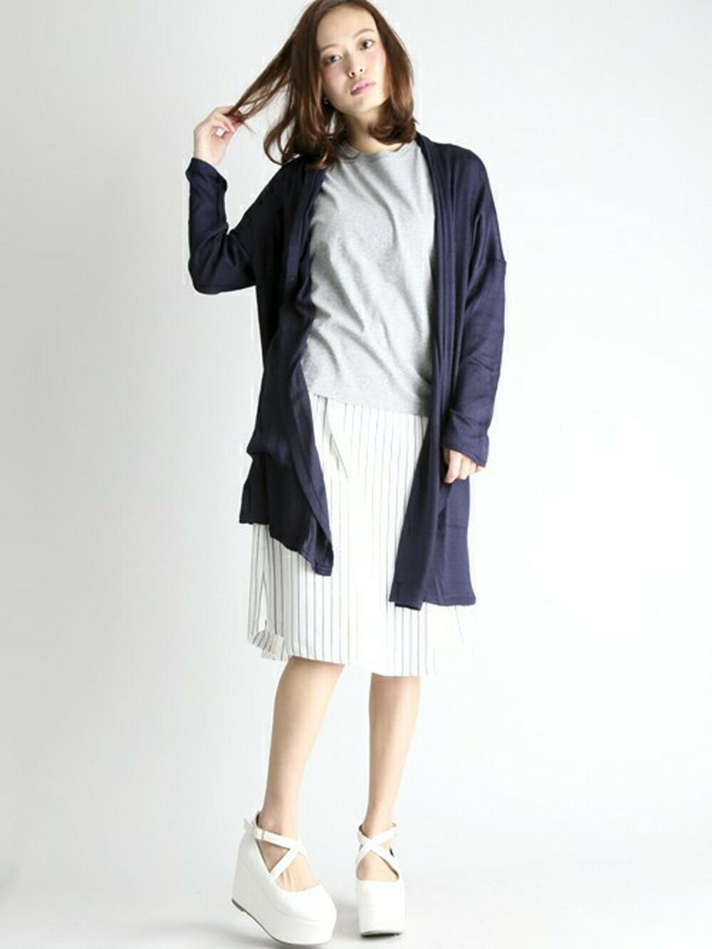 ニットソートッパーカーディガン・ブルー系/FREE(4/28トピックス掲載商品) BASIC SS TEE/ベーシックショートスリーブTEE・グレー系/FREE ストライプポンチタックスカート・ホワイト系/FREE H162cm