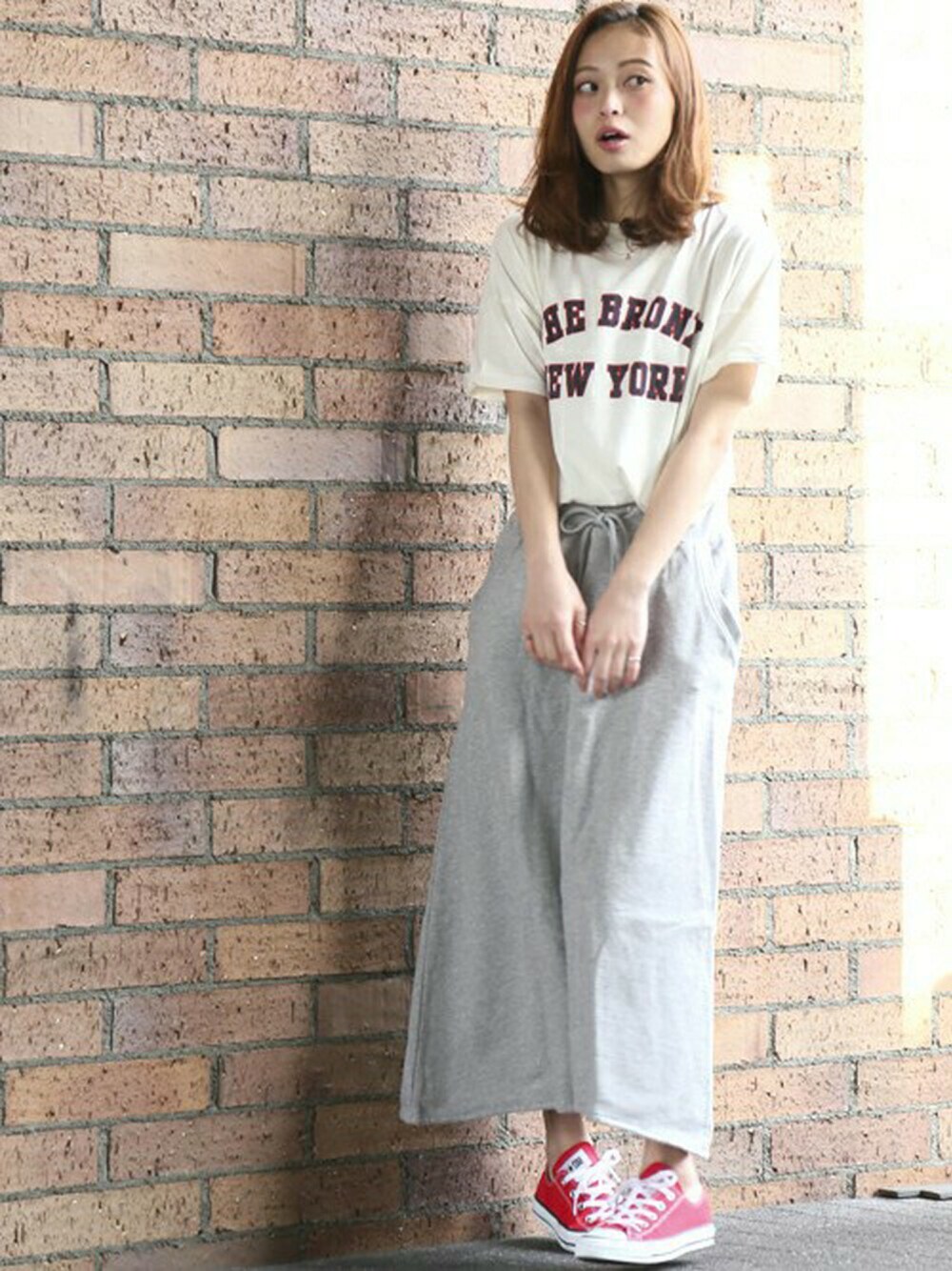 【Champion/チャンピオン】H312 BIG T SHIRT/ビッグT・ホワイト/MEDIUM スウェットマキシスカート・杢グレー/FREE H162cm