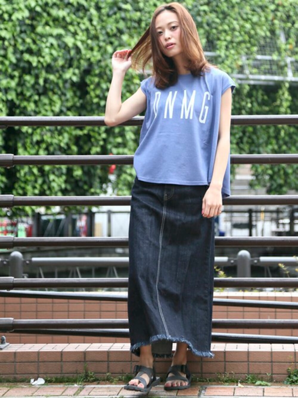 プリントクルーネックTEE-DNMG-・ブルー/FREE デニムマキシスカート・インディゴブルー/X-SMALL(5/5トピックス掲載商品) 【BONNARUE BONNARUE/ボナルーボナルー】BILLY L/スポーツサンダル ・グレー/SMALL H162cm