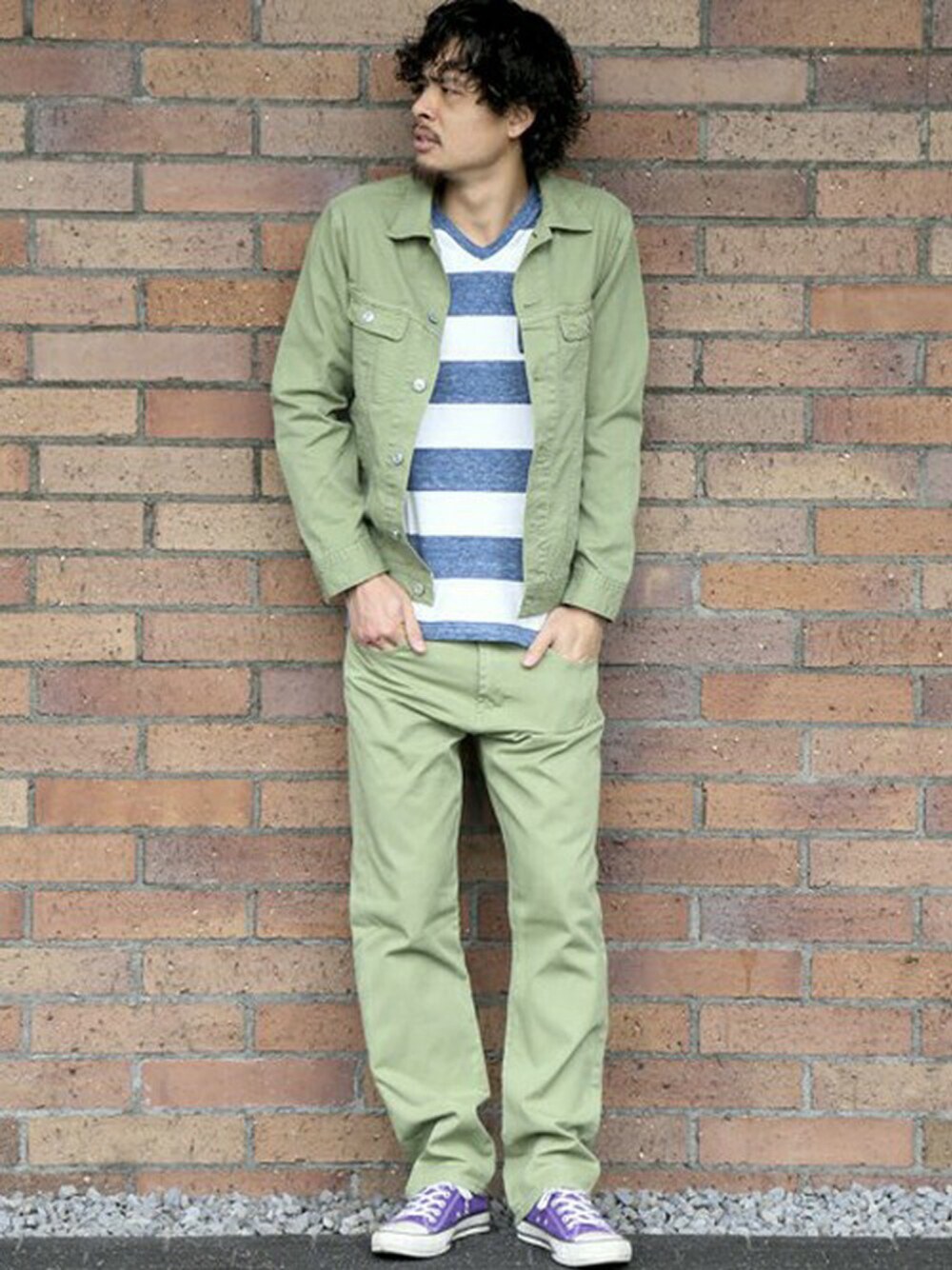 TWILL COLOR G-JKT/ツイルカラーG-ジャケット・グリーン/MEDIUM(5/15トピックス掲載商品) DENIMLOOK BORD TEE/デニムルック ボーダーT・グリーン/MEDIUM TWILL COLOR PANTS/ツイルカラーパンツ・グリーン/MEDIUM(5/15トピックス掲載商品) H173 W73 58kg