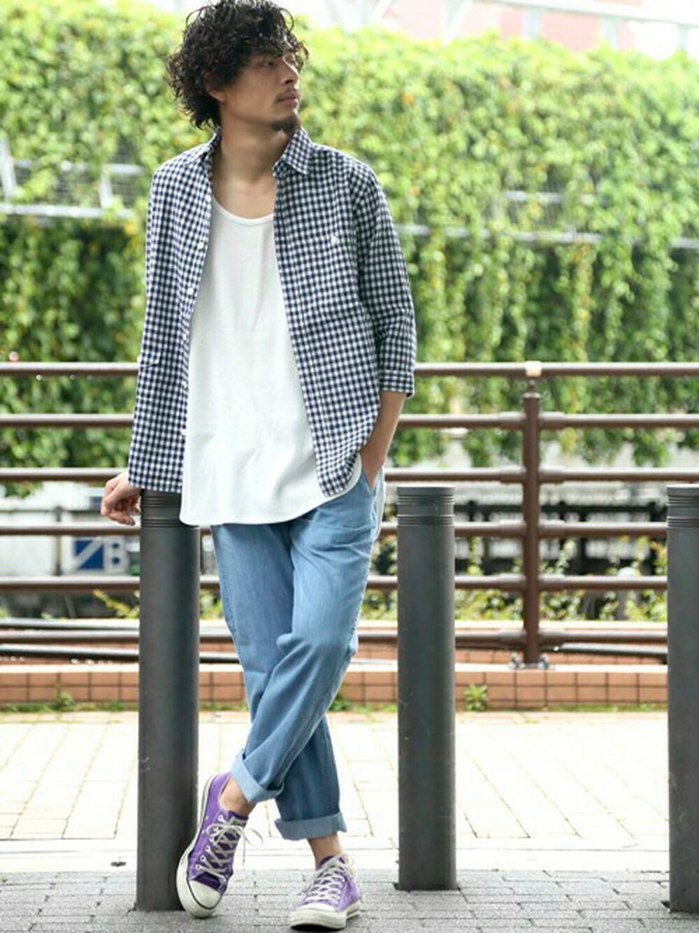メンアサ七分シャツ・ブルー系その他/MEDIUM 【新作予約】ワッフルロングタンク・ホワイト/MEDIUM DUNGAREE EASY PANTS/ダンガリーイージーパンツ・ライトインディゴブルー/MEDIUM H173 W73 58kg