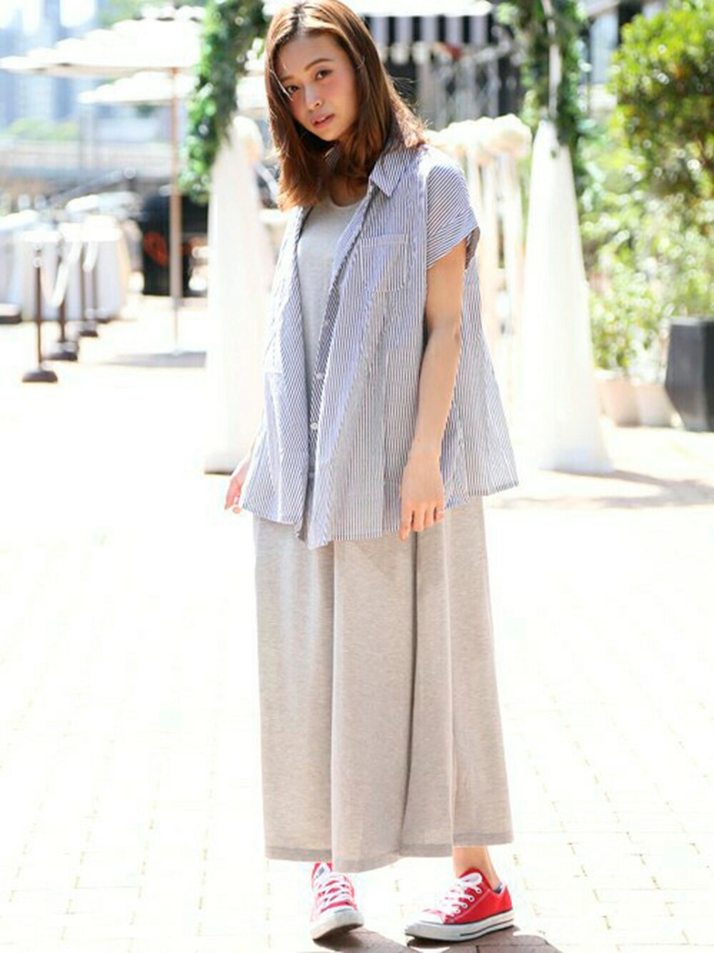 ストライプ ドレープシャツ・ネイビー/MEDIUM(6/1トピックス掲載商品) テンジクマキシワンピース・グレー系/FREE H162cm