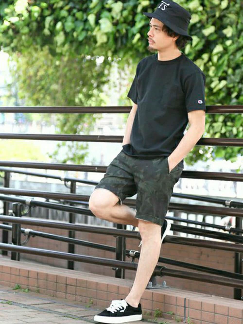 【The Endless summer x halo commodity/ザ エンドレス サマー×ハロ コモディティ】TESバケットハット・ブラック/FREE(6/5トピックス掲載商品) 【CHAMPION/チャンピオン】C5 B303 US T SHIRT/MADE IN USA ポケT・ブラック/MEDIUM 綿麻アロハショートパンツ・カーキ/MEDIUM H173 W73 58kg