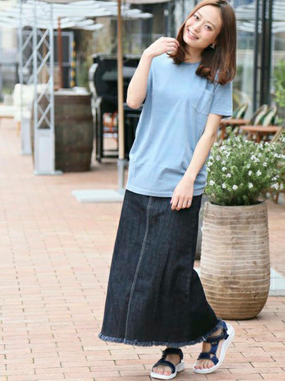 インディゴクルーネックポケT・ライトインディゴブルー/X-SMALL(6/13トピックス掲載商品) デニムマキシスカート・インディゴブルー/X-SMALL 【BONNARUE BONNARUE/ボナルーボナルー】MIKE SOLID L/スポーツサンダル・ネイビー/SMALL H162cm