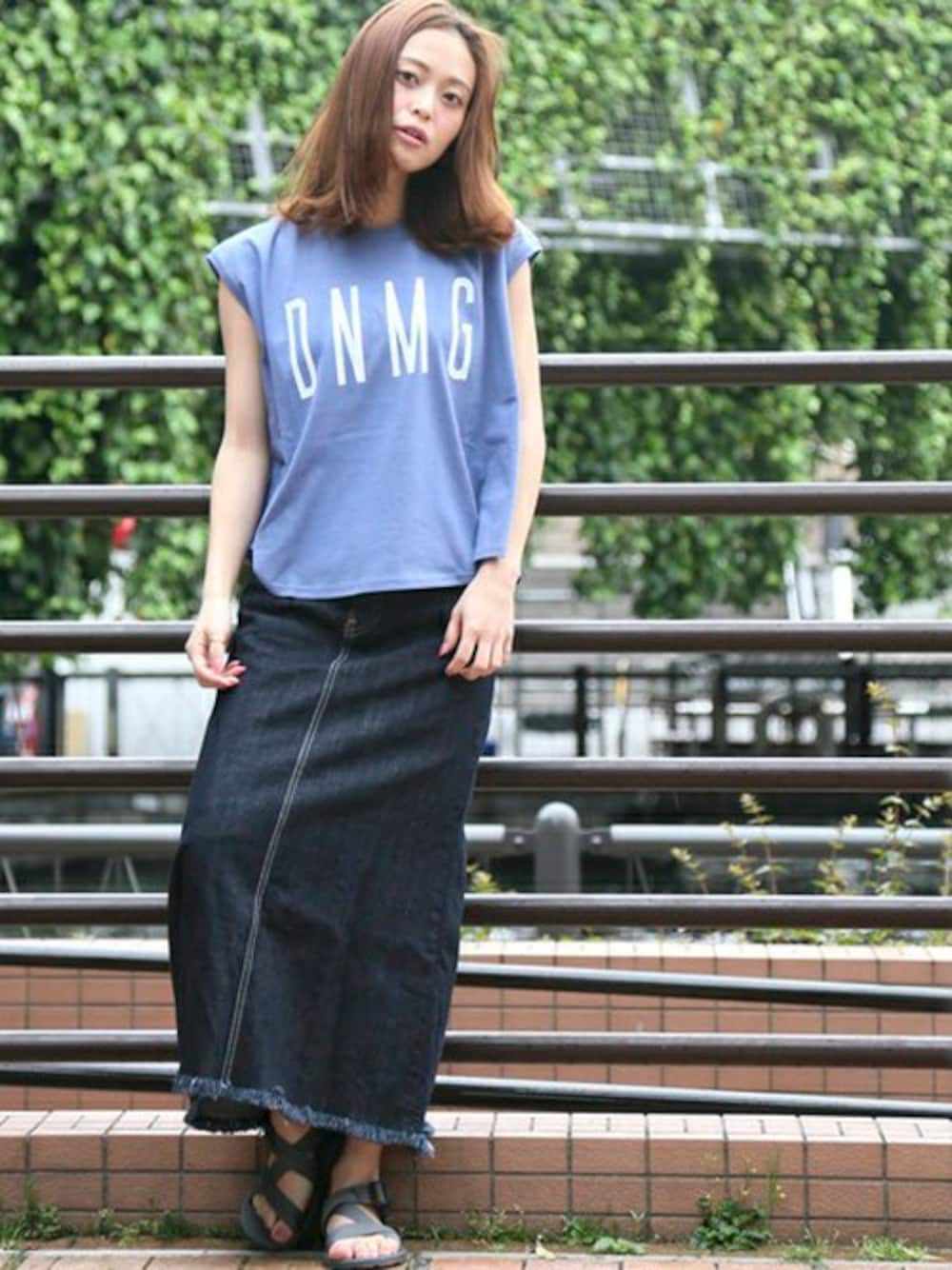 プリントクルーネックTEE-DNMG-・ブルー/FREE デニムマキシスカート・インディゴブルー/X-SMALL(7/2トピックス掲載商品) 【BONNARUE BONNARUE/ボナルーボナルー】BILLY L/スポーツサンダル ・グレー/SMALL H162cm