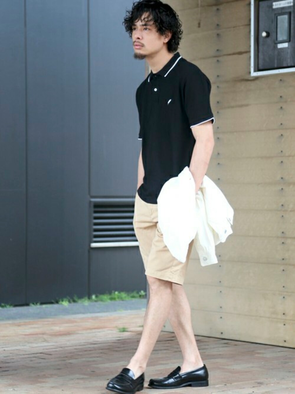 【WEB限定】鹿の子刺繍ポロ・ブラック/MEDIUM(7/8トピックス掲載商品) TWILL COLOR SHORTS/コットンツイル カラーショートパンツ・ベージュ/MEDIUM TWILL COLOR G-JKT/ツイルカラーG-ジャケット・ホワイト/MEDIUM H173 W73 58kg