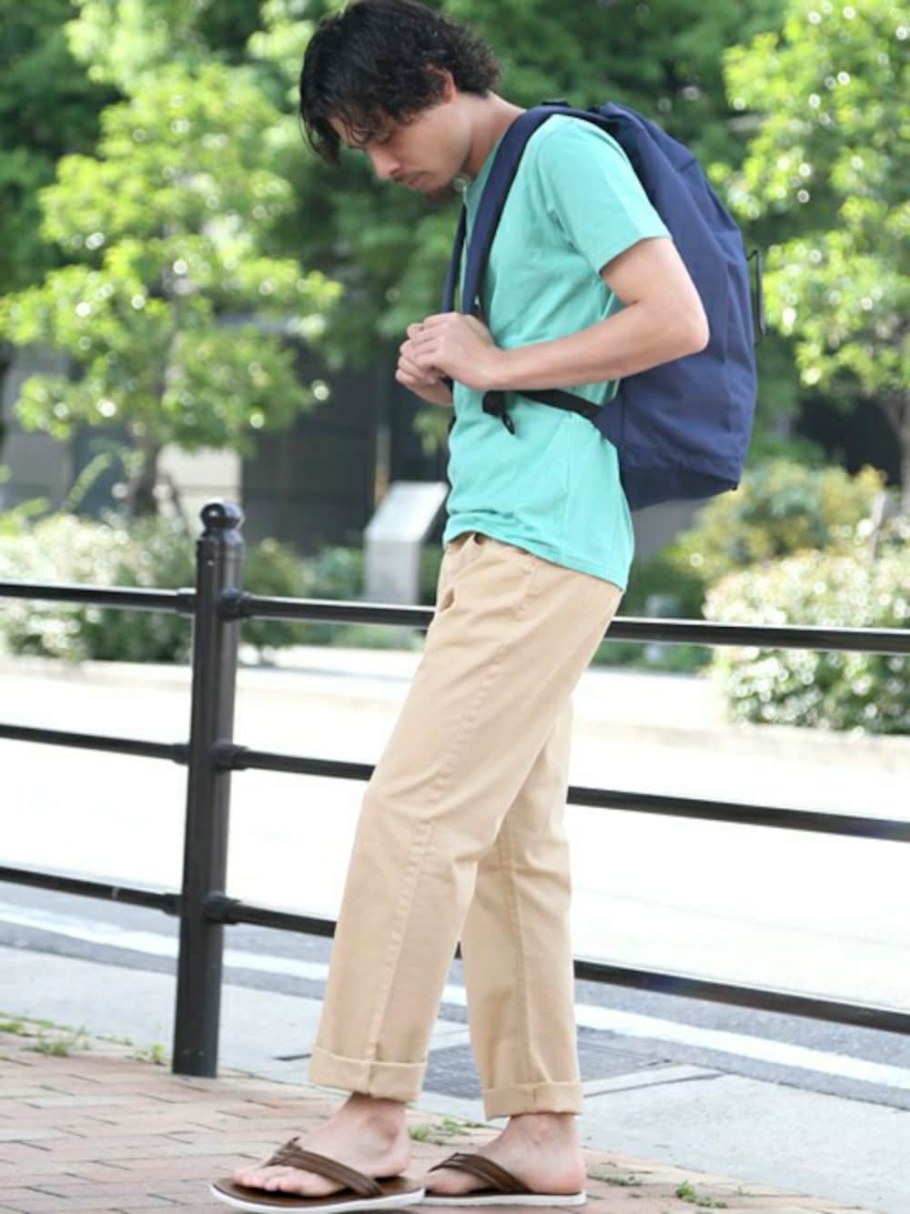 ベーシックムジTシャツ・グリーン/MEDIUM(7/28トピックス掲載商品) TWILL COLOR PANTS/ツイルカラーパンツ・ベージュ/MEDIUM 【ISLAND SLIPPER/アイランドスリッパ】サンダル・ブラウン/9 【PINE FORT/パインフォート】ZIPPACK/ジップ バックパック・ネイビー/FREE H173 W73 58kg
