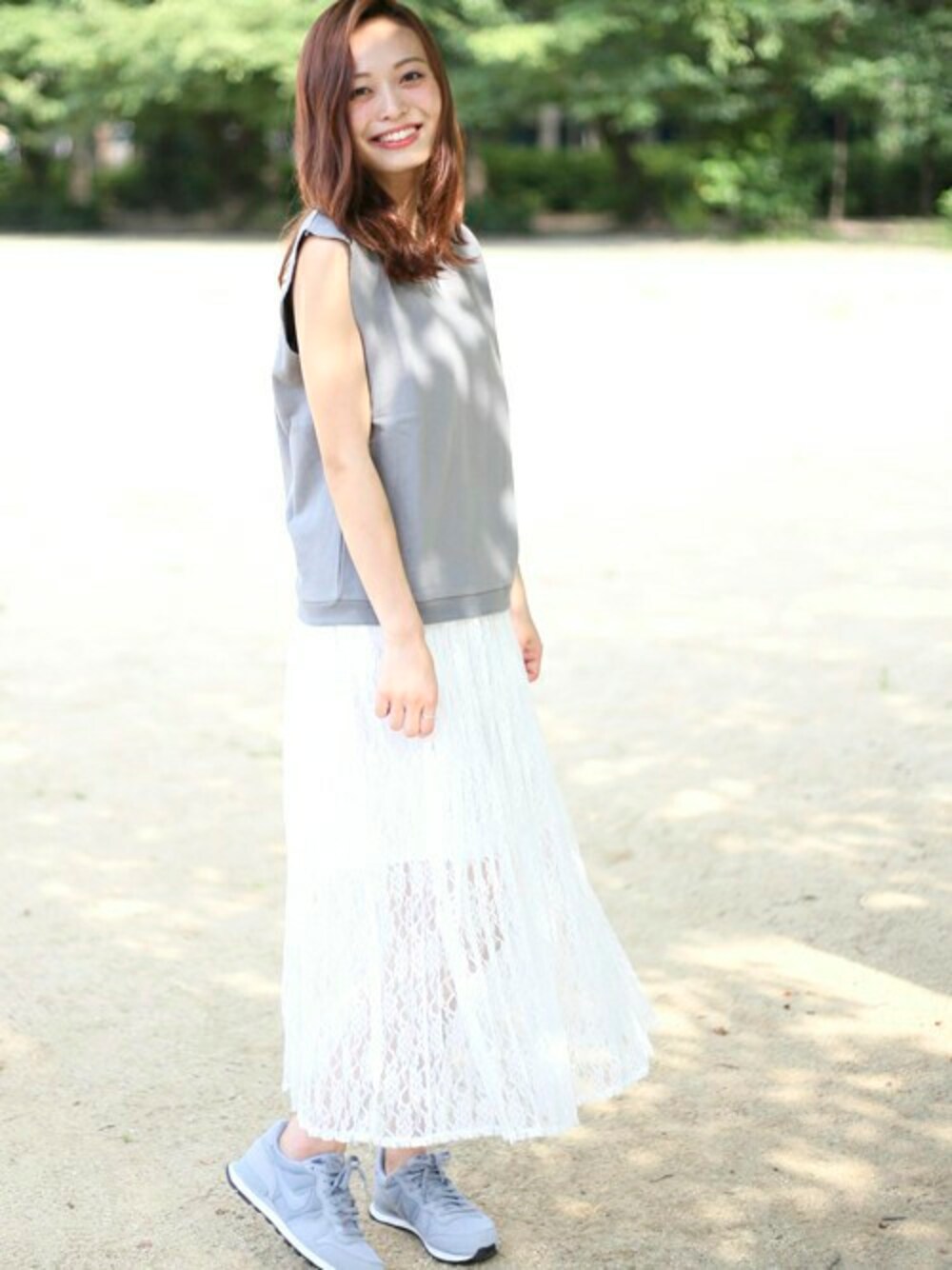 カットオフノースリーブスウェット・グレー/FREE 【WEB限定】2WAYレーススカート・オフホワイト/FREE(8/1トピックス掲載商品) ストーンバングル・シルバー/FREE H162cm