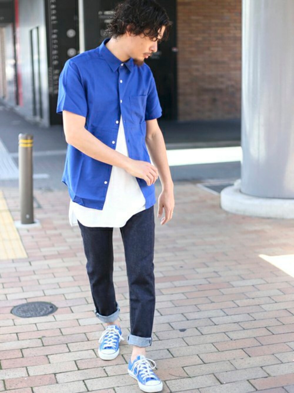 【WEB限定】カラーコットンリネンシャツ・ロイヤルブルー/MEDIUM(8/10トピックス掲載商品) 【WEB限定】ワッフルロングタンクトップ・ホワイト/MEDIUM(8/10トピックス掲載商品) 【Made in Japan】SlimStraightXXtype -One Wash-/スリムストレートデニムパンツ・ネイビー/29inch H173 W73 58kg
