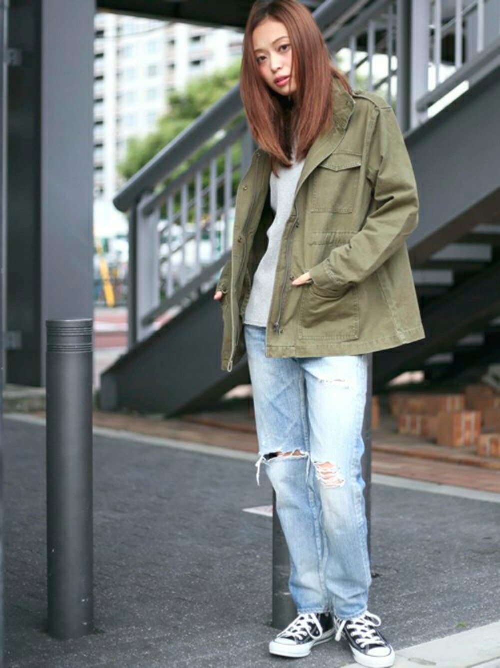M-65ジャケット・オリーブ/FREE(10/13トピックス掲載商品) ボア切り替えハイネックスウェット・グレー/FREE 【Made In Japan】クラッシュスリムストレートデニム・インディゴブルー/X-SMALL H162cm