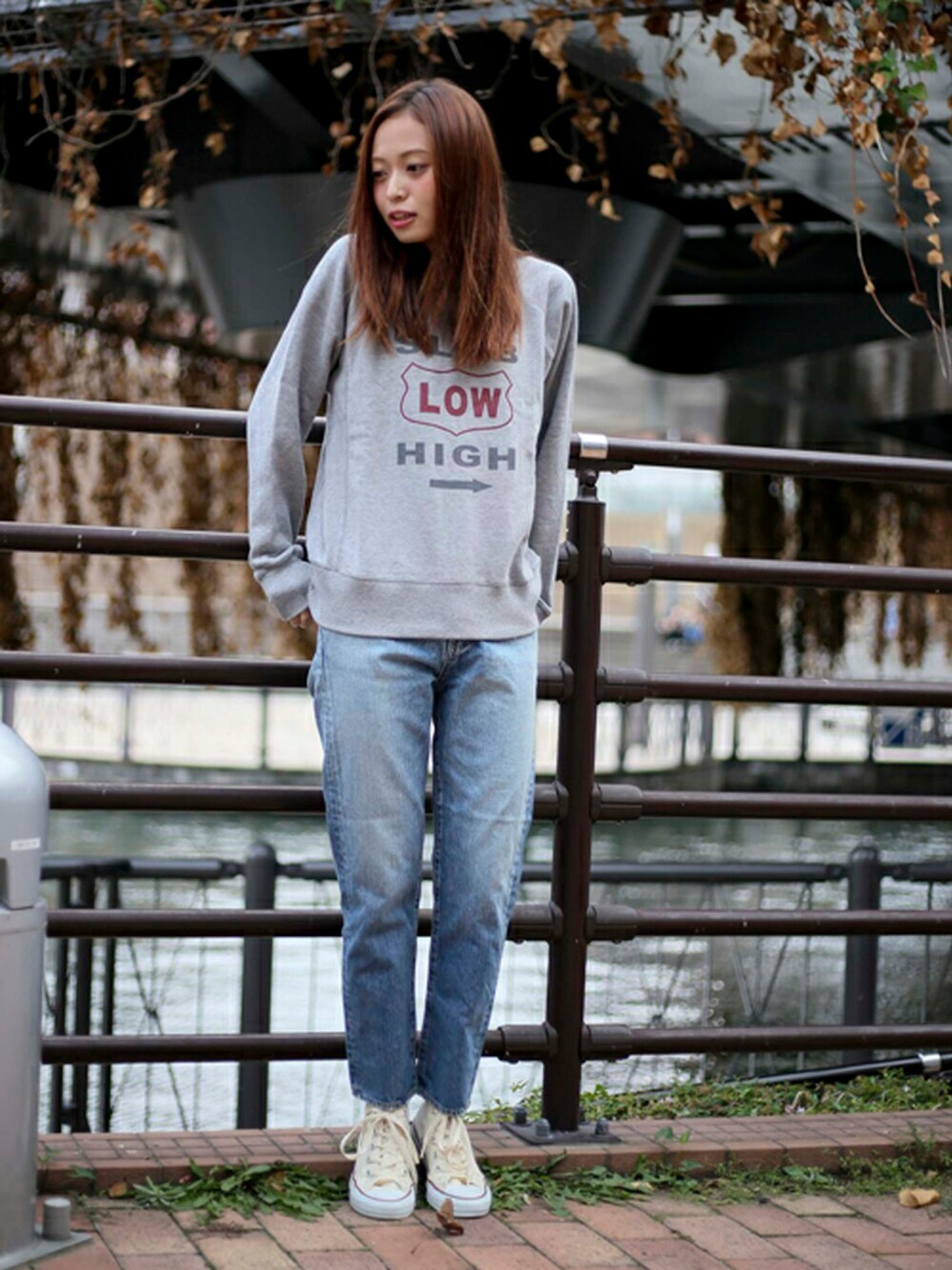 DenimeWebStoreのスウェット「クルーネックプリントスウェット SLUB CITY」を使ったコーディネート