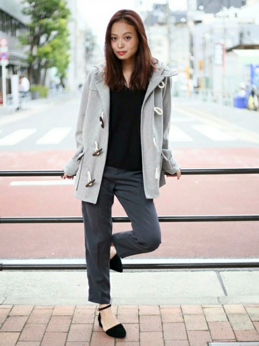 メルトンダッフルコート・グレー/FREE Vネックインターロックプルオーバートップス・ブラック/FREE ハイウエストテーパードパンツ・ブラック系その他/FREE 【WEB限定】セパレートパンプス・ブラック/MEDIUM(11/7トピックス掲載商品) H162cm