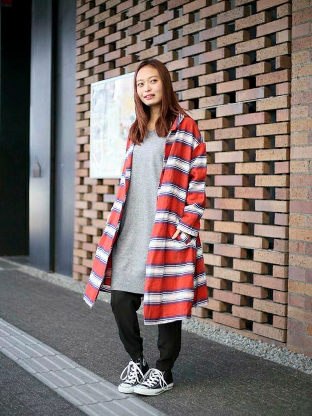 ヘビーフランネルガウン・レッド系その他2/FREE ハイゲージニットワンピース・グレー/FREE 2タックジョガーパンツ・ブラック/FREE H162cm