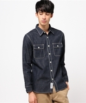 【WEBSTORE限定】モッズコート・カーキ/MEDIUM デニムワークシャツ・ダークインディゴブルー/MEDIUM ミリタリーバックサテンパンツ・ネイビー/MEDIUM H173 W73 58kg