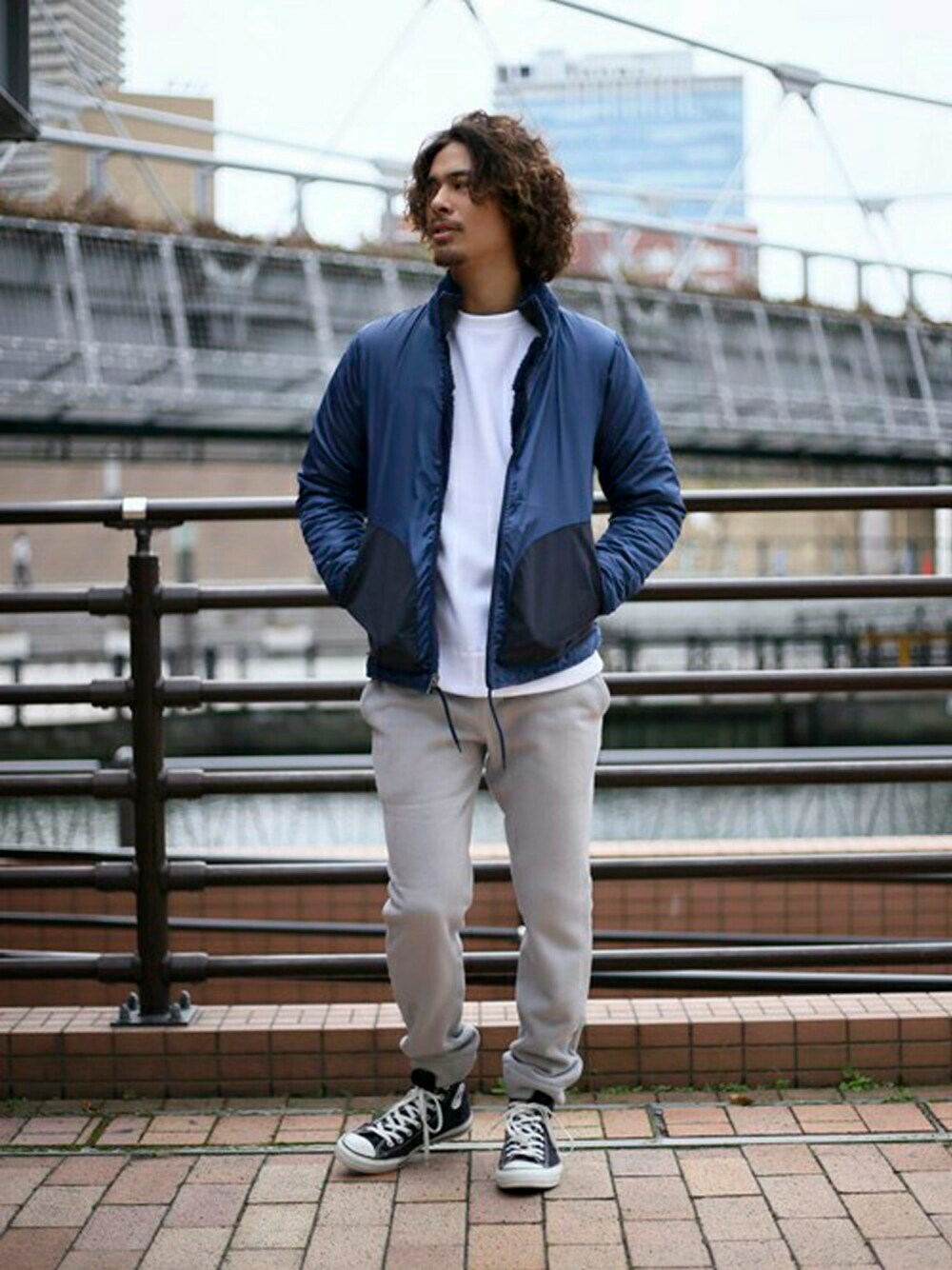 フリースリバーシブルジャケット・ネイビー/MEDIUM サーマルフリースクルーネックトップス・ホワイト/MEDIUM サーマルフリースパンツ・グレー/MEDIUM H173 W73 58kg