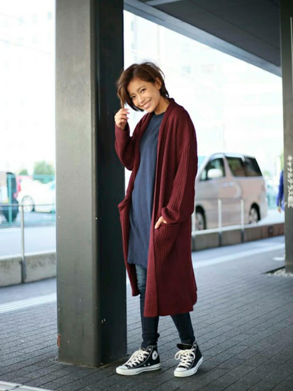 ニットガウン・ワイン/FREE 裏毛切り替えワンピース・ネイビー/FREE 【Made In Japan】ハイウェストスキニーデニム・ダークインディゴブルー/X-SMALL H160cm