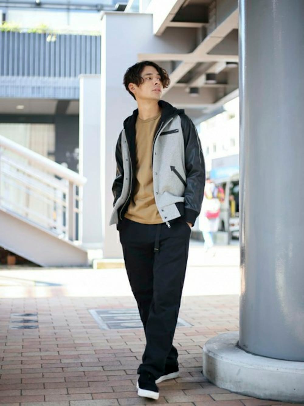 メルトンスタジャン・グレー/MEDIUM ヘビー裏毛フルジップパーカー・ブラック/MEDIUM 【JapanMade】BASIC CUTSEW SS CN TEE/ベーシックカットソークルーネックTシャツ・ライトブラウン/MEDIUM ヘビー裏毛スウェットパンツ・ブラック/MEDIUM H173