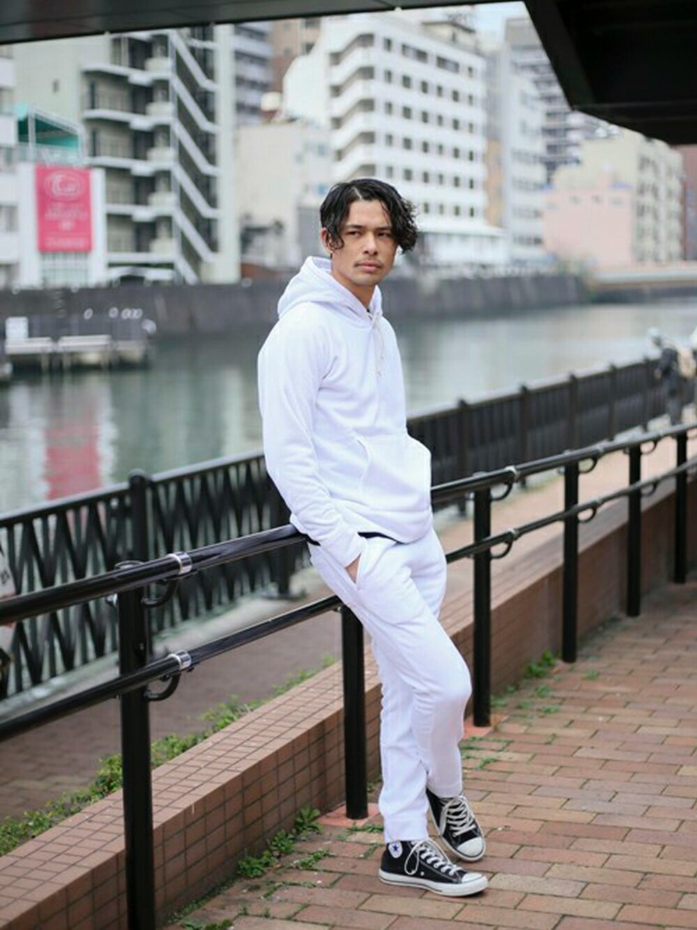 サーマルフリースプルオーバーパーカー・ホワイト/MEDIUM サーマルフリースパンツ・ホワイト/MEDIUM H:173cm