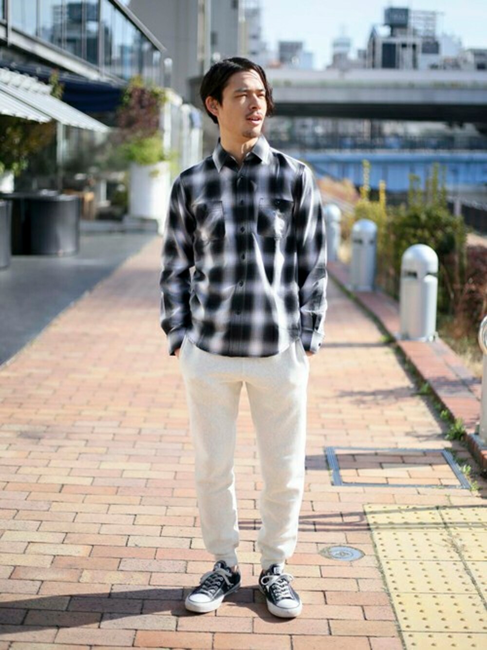 オンブレチェックシャツ・ブラック系その他/MEDIUM 【Champion/チャンピオン】スウェットパンツ・オートミール/MEDIUM H:173㎝