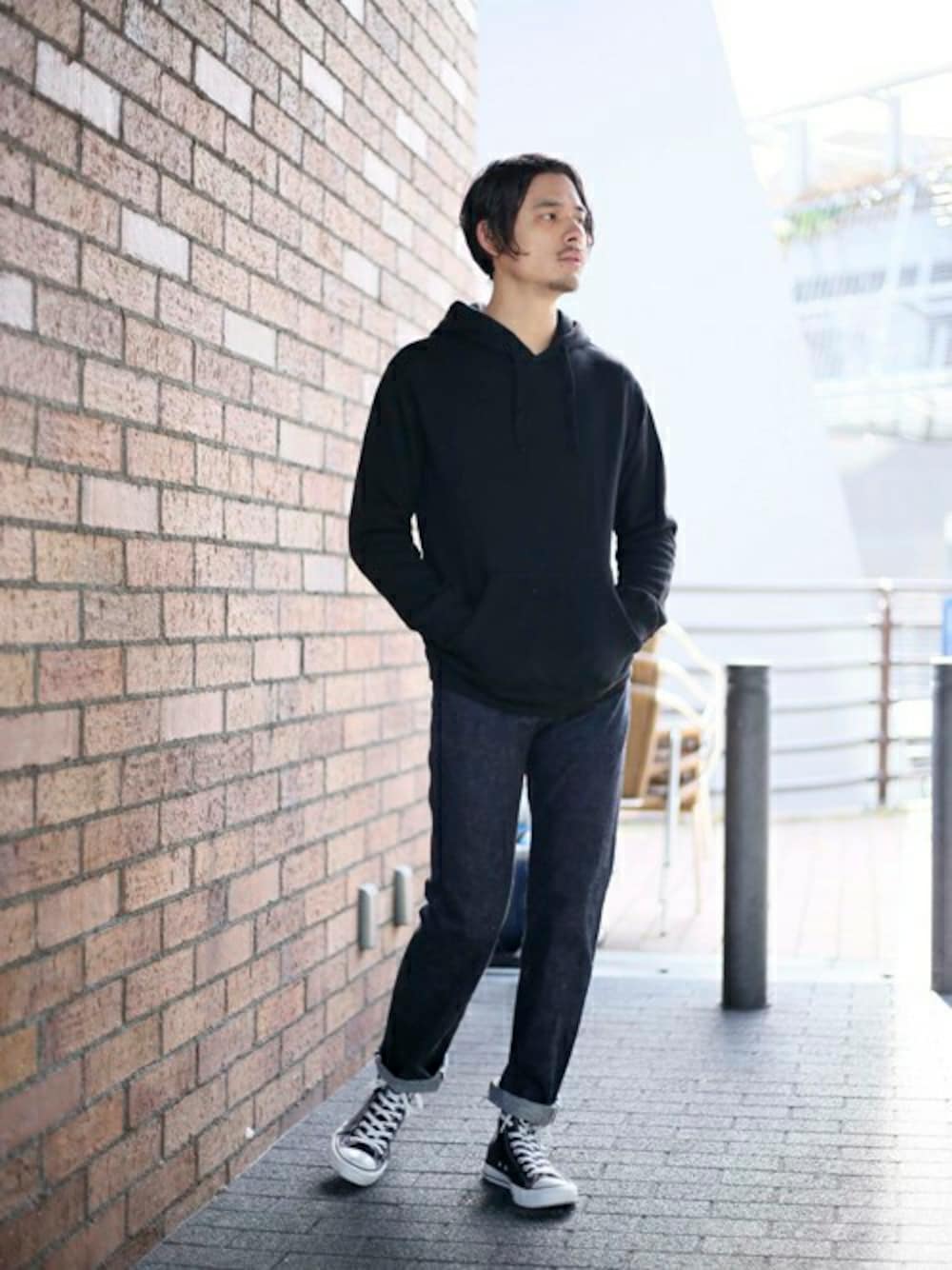 DenimeWebStoreのパーカー「ソフト裏毛無地プルオーバーパーカー」を使ったコーディネート