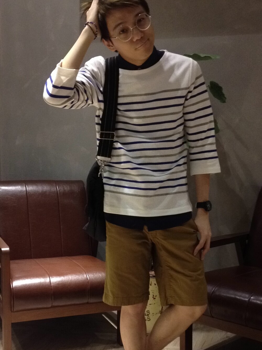 スマート X カジュアル コーディ登場〜٩(✪ꀾ⍟༶)و For today's style would be smart and casual. Short sleeve shirts layered inside the stripe 3/4 sleeve t shirt, as the weather here are hot, you can match it with a shorts and you are ready to go✌(´◓q◔`)✌