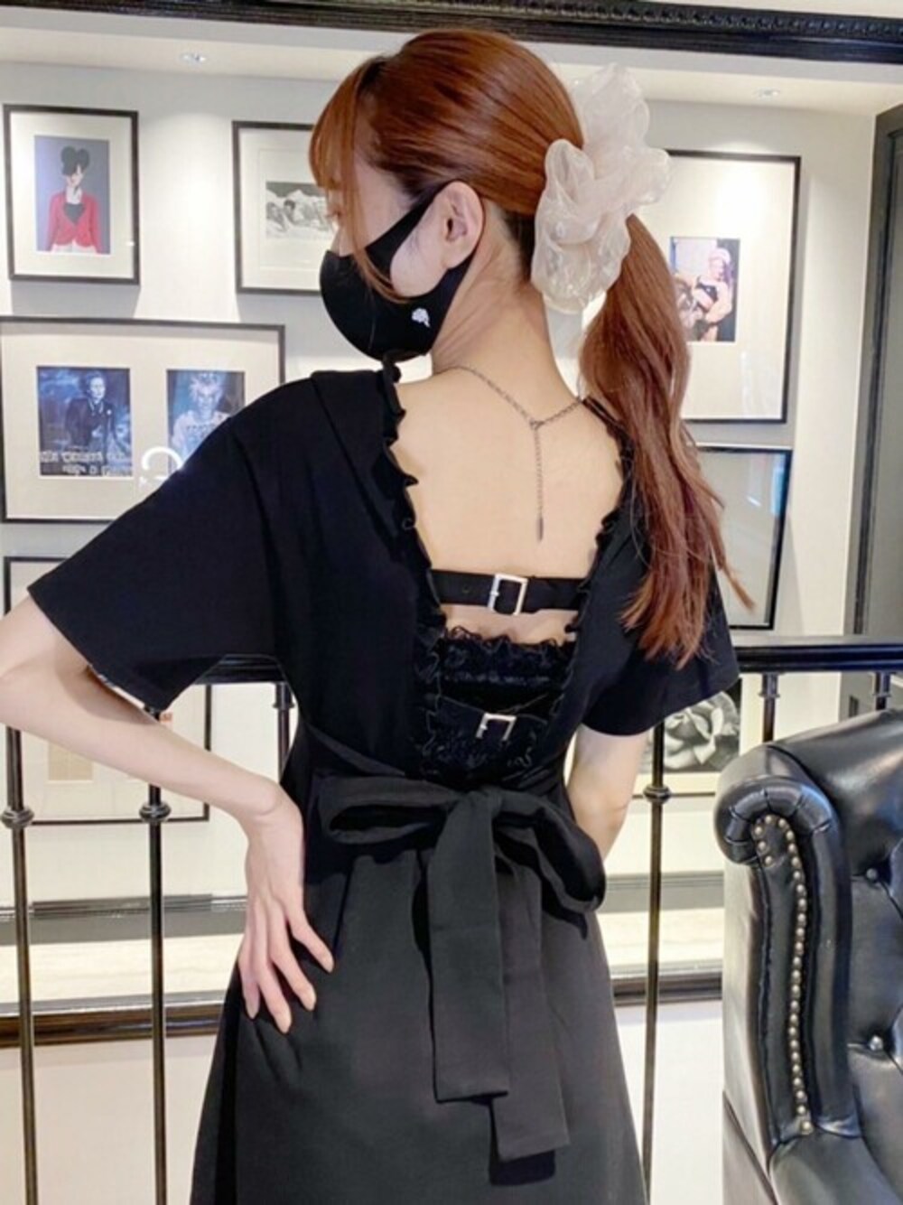 1つ前の投稿と同じワンピース。背中は大胆に開いていて、カット素材を女性らしく見せることができます。 インナーはレース素材のベアトップを合わせるのがおすすめ✞