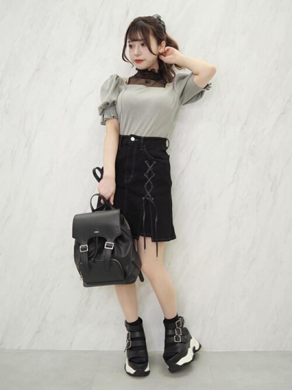 eatme-staffのデニムスカート「サイドレースアップデニムスカート」を使ったコーディネート