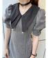 大きな襟が目を惹くミニ丈ワンピース🖤連日大人気です!✨ バックリボンでウエストマークが出来るので骨ストでも着痩せ効果◎! 160cmでSサイズを着ると写真の丈感になりました☺️ミニすぎるのが苦手な方はMを選ぶと3.5cm丈が長くなるので、Sよりも安心して着られます🙆♀️