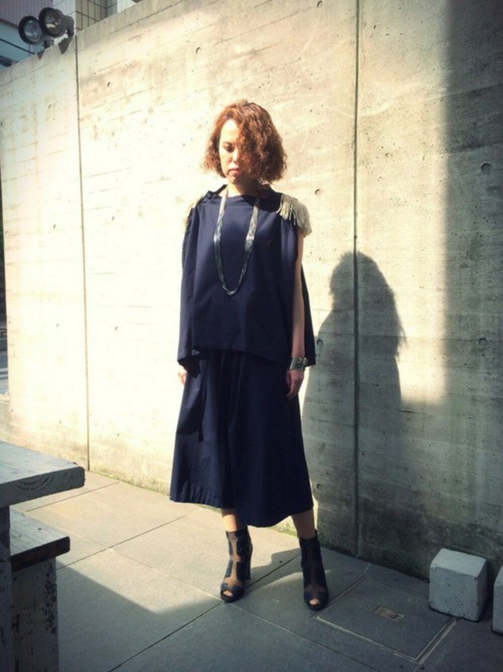 今日は、程よくミリタリー感が漂うセットアップで コーディネート。 しなやかなフリンジネックレスでモード感をプラス。 手元にはさり気なく遊び心を加えるスターモチーフの バングルを…。