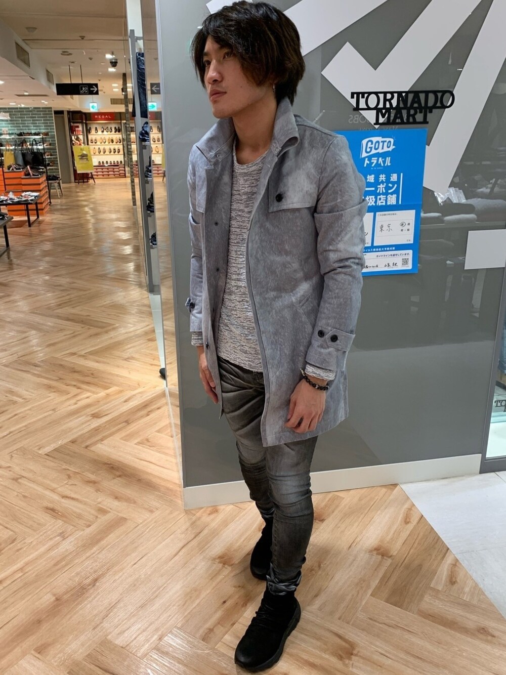 こんにちは!トルネードマート新宿マルイメン店の粕谷です! 今回ご紹介するアイテムはトルネードマートのAW定番アイテム!スエードのコートです!! シングルのトレンチコートに返し衿が特徴的な比翼仕立てで、細身のAラインが綺麗に見える1着となっています! 少しづつ肌寒いと感じる季節になってきましたのでこのコート1着あれば綺麗目でありつつかっこよくなれるアイテムなので是非GETしていただきたいです!! コート 6310213002 ¥34,000+税 カットソー 6310277009 ¥8,800+税 パンツ 6310217001 ¥25,800+税 シューズ 6310266004 ¥38,000+税